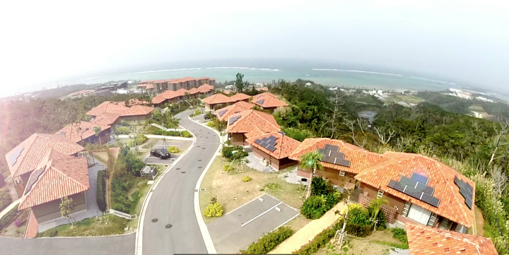 OIST教員宿舎の屋根に取り付けられたソーラーパネルから発電されたエネルギーは、各家庭のエネルギーサーバーを通して直流送電網システムでつながれ、複数の家庭で電力を融通・分配できる仕組みとなっている。
