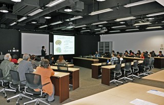 去る3月29日(火)、(独)沖縄科学技術研究基盤整備機構(OIST)は、機構のシーサイドハウスにおいて、中学生・高校生や一般の方々を対象に、映画を鑑賞し、サイエンスについて語り合う「サイエンス・フィルムショー」を開催しました。このイベントには地元恩納村や近隣市町村から30名の方々にお越しいただき、映画「レナードの朝」の上映に先立ち、OISTコモンリソースグループ統括の山田真久博士が、映画に関連づけて脳科学の研究のはじまり、脳の働き、脳内でのドーパミンという神経物質の働き、映画の中で嗜眠性脳炎という病気の治療に使われたL-ドーパという薬について解説しました。