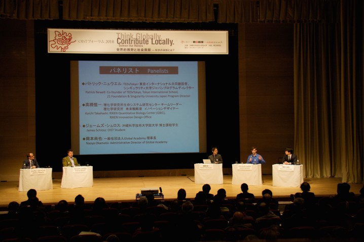 グローバル化が急激に進む現代社会において、科学者は世界規模の課題や地域社会の発展に対してどのような貢献が求められているのでしょうか? 2018年1月13日(土)に都内で行われた「OISTフォーラム2018」は、「世界的視野と社会貢献―科学の役割とは?」をテーマに、次世代の育成に関わる教育者や、起業家、現役の博士課程学生を招き、科学とイノベーションについて、そして、世界的視野を持ち、地域社会への貢献の意欲に富む人材を育むために教育機関にはどのような役割が求められているかについて議論を行いました。(沖縄科学技術大学院大学(OIST)主催、朝日新聞社共催、ネイチャー・リサーチ協力)