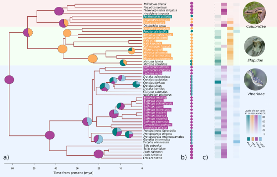 2019年5月20日付でMolecular Biology and Evolution誌 オンライン版に掲載された本研究では、50種以上の毒蛇のデータを用いて、ヘビ毒の進化の歴史を再構築しようと試みました。これらの種は沖縄のハブからブラジルのサンゴヘビまで多岐にわたりますが、すべて6千万年前の共通祖先から分岐した種です。