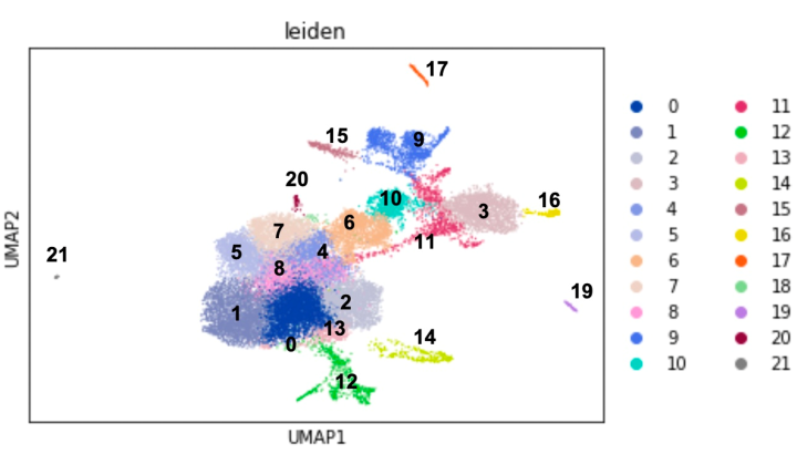 シングルセル遺伝子発現解析によって得られたパターンニング遺伝子の特徴的発現パターンから、図3に示すように、イトマキヒトデの原腸胚や幼生の体の各部分が、22のうちのどの細胞クラスターによって特徴づけられたかが分かりました。