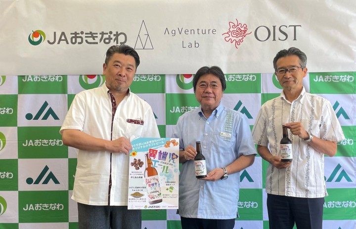 沖縄科学技術大学院大学(OIST)が恩納村と研究開発した高機能米「ちゅらおとめ」が使用されたオリジナルクラフトビール『異端児エール~伊江島の黒糖とOIST米のBlack Porter~』が、一般社団法人AgVenture Lab(以下「あぐラボ」)と、沖縄県農業協同組合(以下「JAおきなわ」)とのコラボレーションにより誕生しました。ちゅらおとめを利用した製品の第1弾となります。本製品の発表会が沖縄県那覇市で7月20日に開催されました。