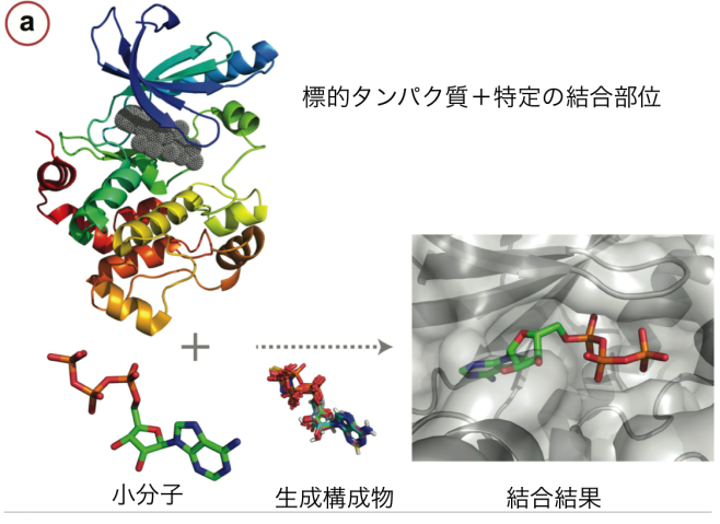 ドッキング・シミュレーションの概念図。主に小分子をあるタンパク構造に結合させ、結合力を推定するために使用するシミュレーション技術です。