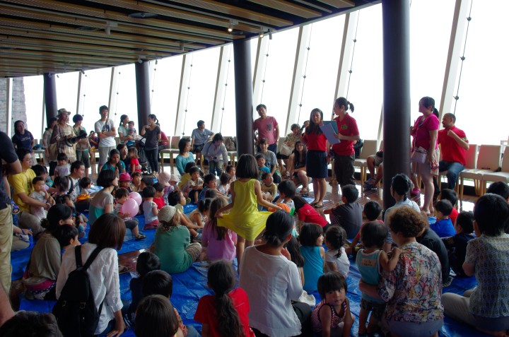 冒頭、地域連携セクションの池田有砂さんが子どもたちに等身大のクジラの壁画を描く作業について説明