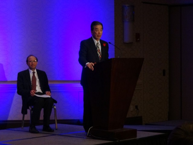 2013年米国科学振興協会(AAAS)会合にて受賞スピーチをするOISTの黒川清理事