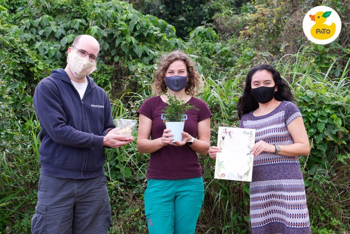 CDCでのおやつから出たバナナの皮を集めて堆肥化する活動が評価され、第1回「 PATOグリーン・フューチャーズ賞」を受賞したナタリア・トカチェンコさん(中央)。