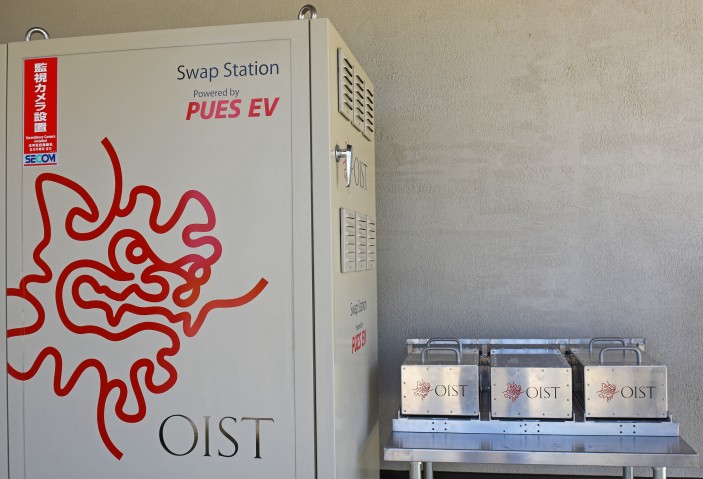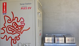 In addition, the house is equipped with the Swap Station: an exchangeable battery system for electric cars – made by a combination of batteries each of 1.5kWh – that utilizes energy from the solar panels and the wind turbines. Characteristic of this system is that the batteries can be charged at the house while the car is used, and then physically swapped with the drained batteries in the car. The batteries can be loaded anytime, saving the charge time. “OIST campus is suitable for developing a battery system, electric vehicles and its management system in hot and humid areas,” Izumi Miyashita, Director of PUES Cooperation, said. “This technology contributes to the improvement of situations in which there is poor power supply or no power supply at all. The system is also effective for securing electricity at times of disaster, such as electric outage due to a typhoon in Okinawa. From this point of view, this technology could also contribute to the improvement of electricity supply condition in Okinawa.”