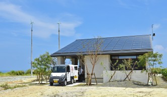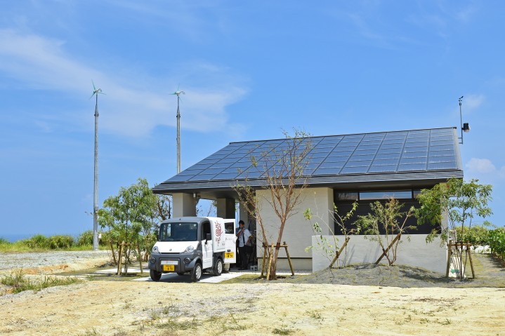 The aim of the research facility is to develop practical solutions that could improve the quality of life in remote areas. Specifically, hot and humid areas in developing countries that lack basic infrastructures, such as electricity. The house for sustainable living is equipped with 88 photovoltaic panels (maximum output of 7kW) on the roof and two outside wind turbines (1kW×2). These devices generate electricity that is stored into a DC battery system, which supplies power to the house air conditioner and appliances. Prof Hiroaki Kitano, from OIST, commented that the aim is to optimize the use of renewable energy in island-based communities.