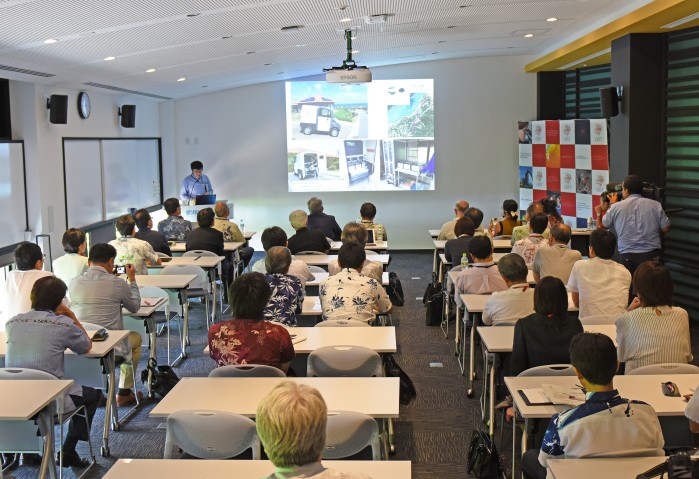A new R&D site for sustainable living in hot and humid areas was inaugurated on July 28th, 2016. The site is a collaboration between the Okinawa Institute of Science and Technology Graduate University (OIST), Misawa Home Institute of Research and Development Co. Ltd., and PUES Corporation, and it is located on the OIST campus. At the opening ceremony, guests and journalists had the opportunity of exploring the new site and listening to the presentations of the research project for sustainable living and the exchangeable battery system.