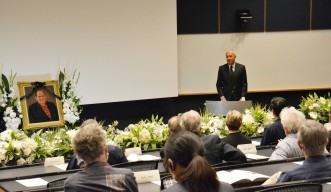 The memorial ceremony opened with a beautiful rendition of Pachelbel’s Canon in D Major followed by opening remarks from OIST President and CEO Dr. Peter Gruss. Gruss first met Sydney in Germany in the 1980s and then published an important paper with him on the Pax6 gene.