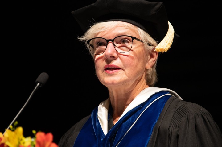 The Commencement Speech was given by President of OIST, Dr. Karin Markides, who encouraged the graduates to observe and listen to perspectives other than their own. “Continue to observe and talk with people that are different from you and mobilize the transformative power you find in the intersection between knowledge areas,” she said. “You perform best when you are true to yourself, so find out what your personal preferences are.”