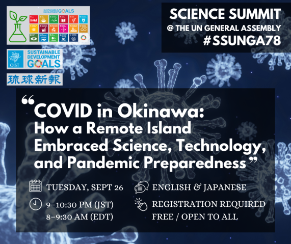 The two organizations will hold an online panel discussion titled "COVID in Okinawa: How a Remote Island Embraced Science, Technology, and Pandemic Preparedness" from 9:00 to 10:30 p.m. (Japan time) on Tuesday, September 26. Speakers include Dr. Yoshihiro Takayama, a physician at Okinawa Chubu Hospital and a member of the prefecture's COVID Task Force, who has worked on infection control while in medical practice; Dr. Mahesh M. Bandi, a professor at OIST and inventor of several devices to assist those who needed help during the COVID-19 pandemic; and Dr. Emi Tamaki, a professor in the Faculty of Engineering at the University of the Ryukyus and CEO of H2L, Inc, who is working to apply AI to preventive medicine, among other projects will review how COVID-19 has been dealt with in Okinawa Prefecture, Japan, and the world during the pandemic, consider remedial measures for possible future pandemics, and envision a new future in which science and technology are utilized to respond to pandemics. The moderator will be Ms. Yoko Shima, Editor in Chief of the Ryukyu Shimpo.