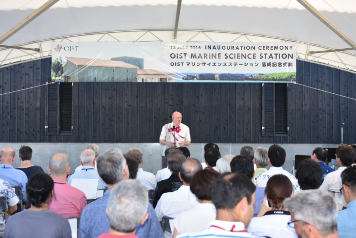 President Dorfan giving his opening speech at the OIST Marine Science Station inauguration ceremony.