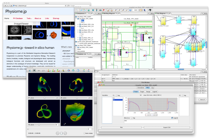 The OIST Open Biology Unit also develops software that enables 3D visualization of simulation results. The image above consolidates responses at multiple levels to simulate electrical signals traveling through the heart.