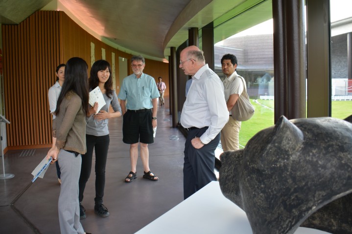 President Dorfan (second from right) talks to Sonomi Hori (second from left) about her work at the OPUA Art Exhibition “A Crossing of Minds”, 28 June 2013.