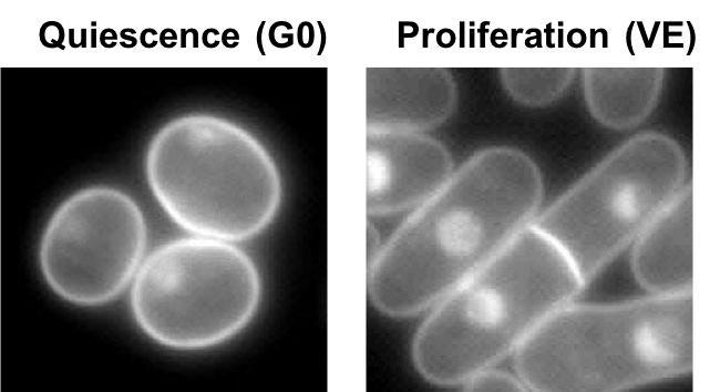 Fission yeast cells were encouraged to grow and multiply by providing them with necessary nutrients. Their nitrogen supply was subsequently cut-off to induce G0 phase. Once the G0 phase was induced, the yeast cells were maintained in this state for as long as four weeks. At the end of this time, they were brought back to their dividing mode by resuming their nitrogen supply.