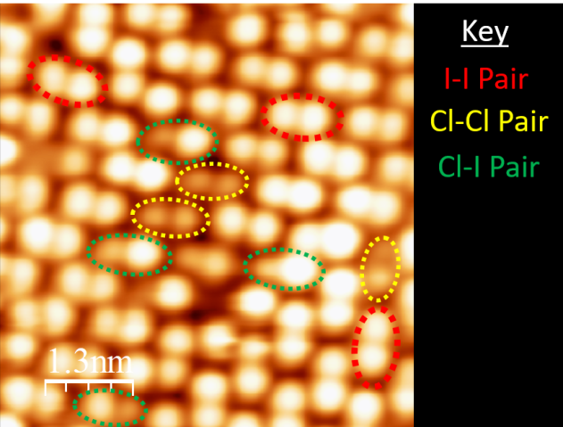 - The researchers observed dark depressions on the surface at locations where chlorine had replaced iodine within the crystal structure