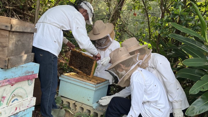 The students at Unna Junior High School Science Club learned how to divide bees under the guidance of beekeeper Mr. Takashi Ikemiya. The students also deepened their understanding of beekeeping by preparing the environment for the new queen bee to be born in the spring.