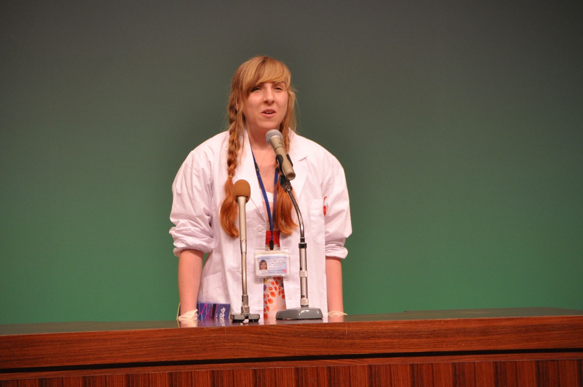 On February 25, Ms. Caroline Starzynski, a short-term student research assistant from Germany in the G0 Cell Unit, and a student in the OIST intermediate Japanese class, took part in the 29th Japanese Speech Contest for Foreigners in Naha City. The annual event, sponsored by the Okinawa International Exchange and Human Resources Development Foundation, brought together 11 contestants from countries such as Brazil, China, India, Israel and Nepal this year, who are all studying in Okinawa. It was the first-ever participation from OIST.