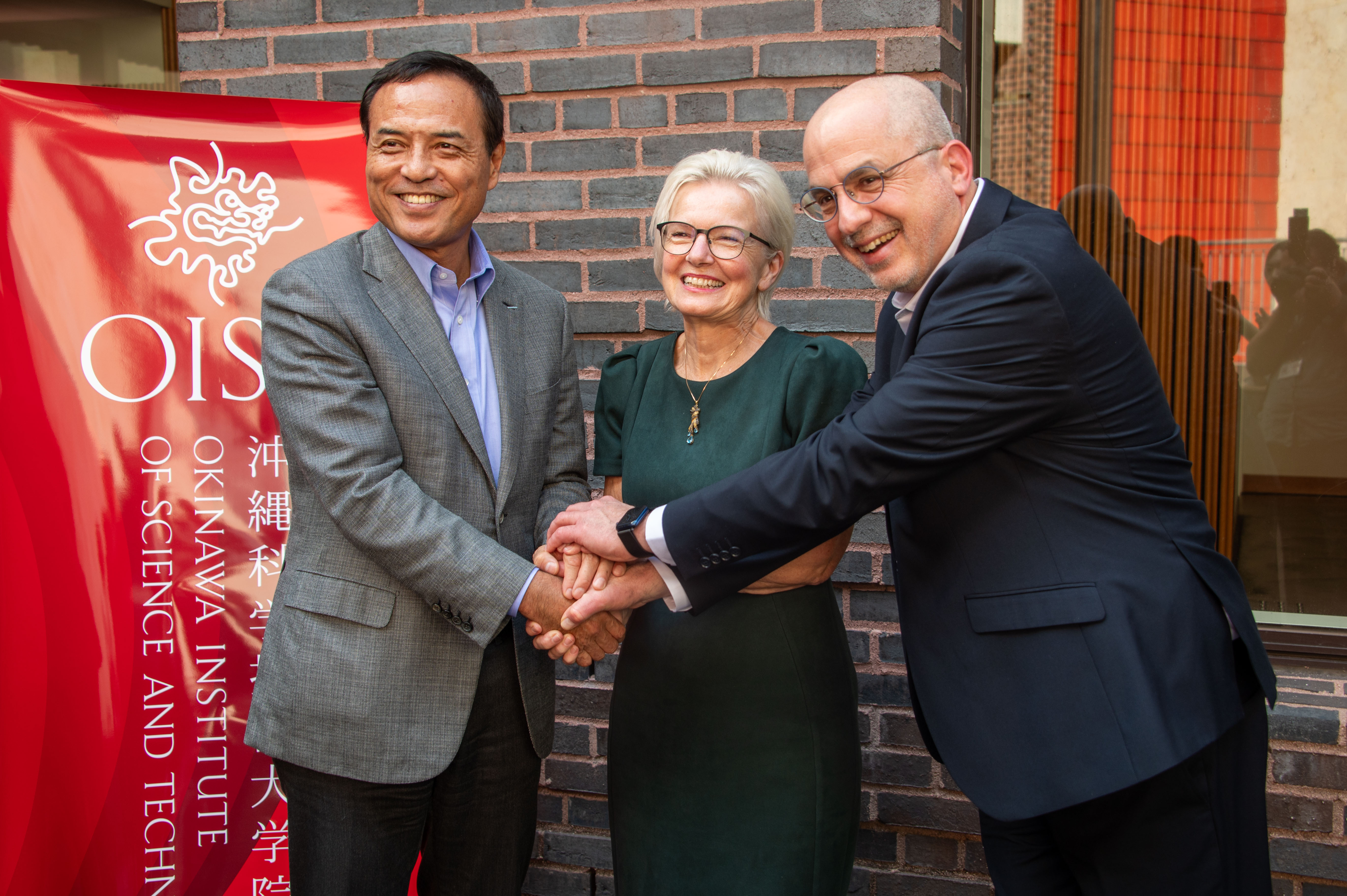 From left to right: Keizai Doyukai Chairperson Takeshi Niinami, OIST President & CEO Karin Markides, and Executive Vice President Gil Granot Mayer