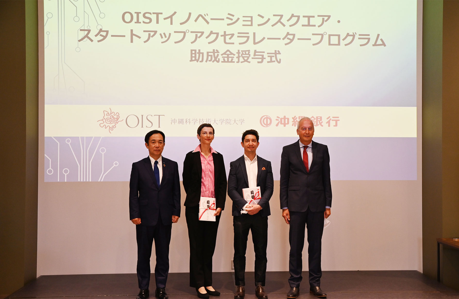 From left to right: Mr. Masayasu Yamashiro, President of the Bank of Okinawa; Dr. Olga Elisseeva, founder of Menopause and Beyond; Mr. Eli Lyons, founder of Genome Miner and Dr. Peter Gruss, President and CEO of OIST.