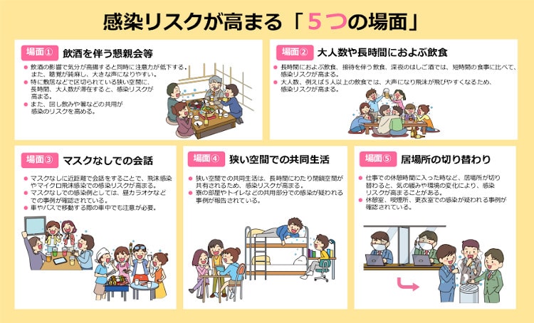 COVID-19 5 situations that increases the risk of infection (Japanese)