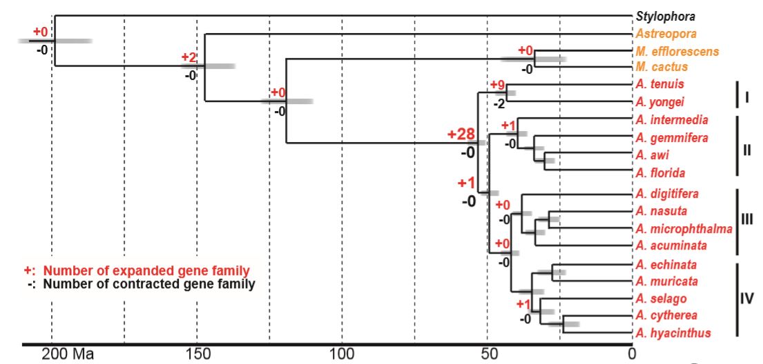 This research showed that the ancestors of Acropora corals diverged from other corals around 120 million years ago and the Acropora genus gained 28 additional gene families before it underwent diversification around 60 million years ago.