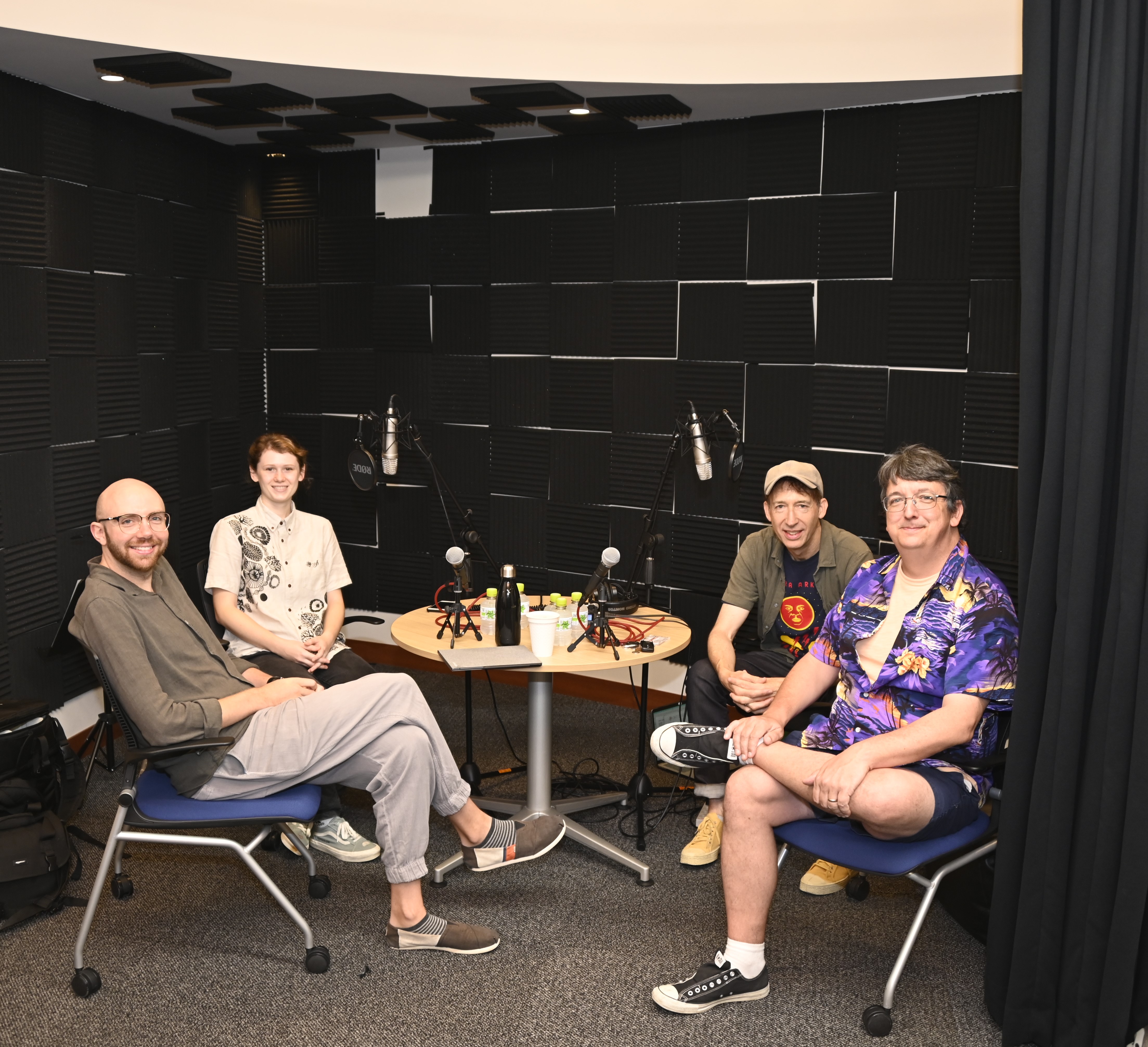 DJ Nick Luscombe met with Dan Warren (front right), Cassondra George (back left) and Sam Ross (front left) to speak about their work studying Okinawa’s nature and wildlife.