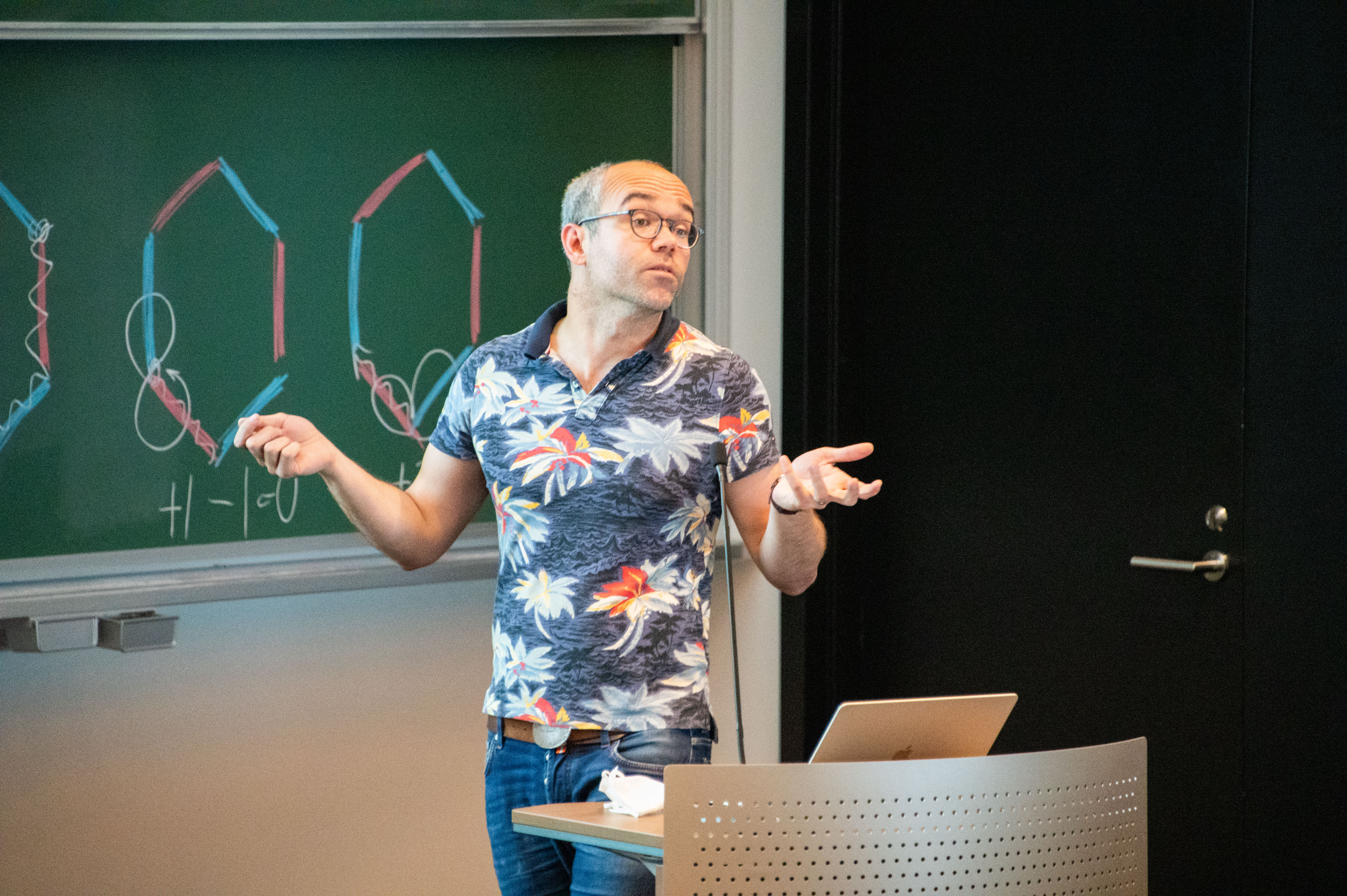 Dr. Chris Bowman explains his research to OIST mathematicians for the first event of the Theoretical Sciences Visiting Program.