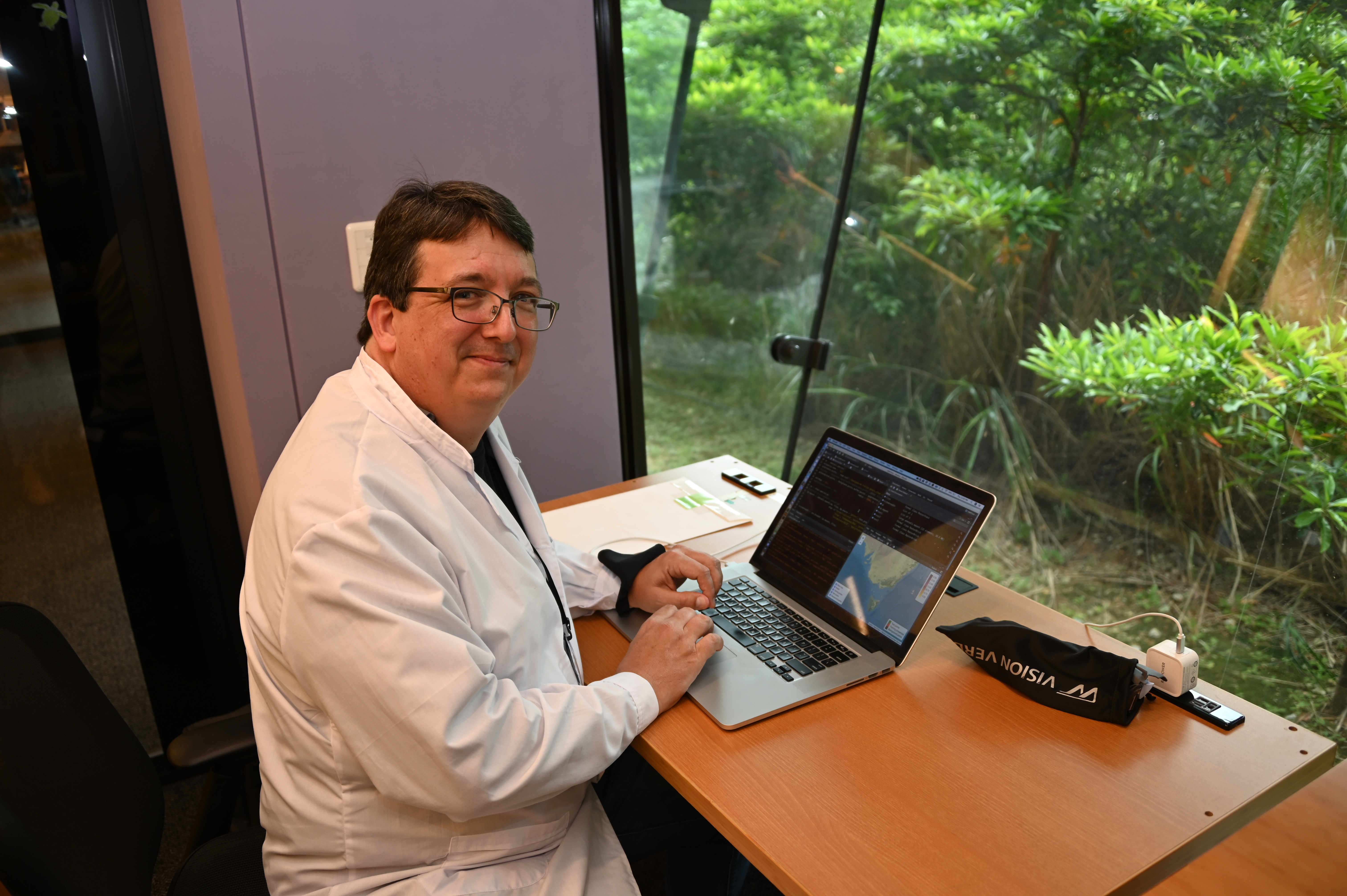 Dr. Dan Warren is now a staff scientist in the Biodiversity and Biocomplexity Unit at OIST. This photo was taken as part of an interview for an article in the Asahi Globe+.