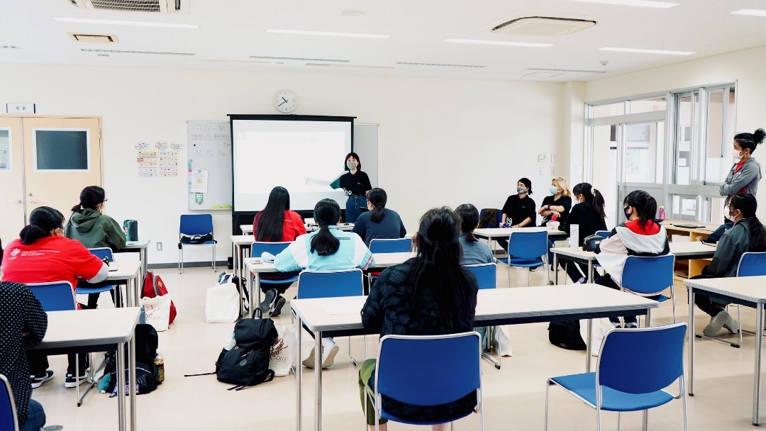Three female neuroscience technicians talk to the girls about how they initially became involved in science.