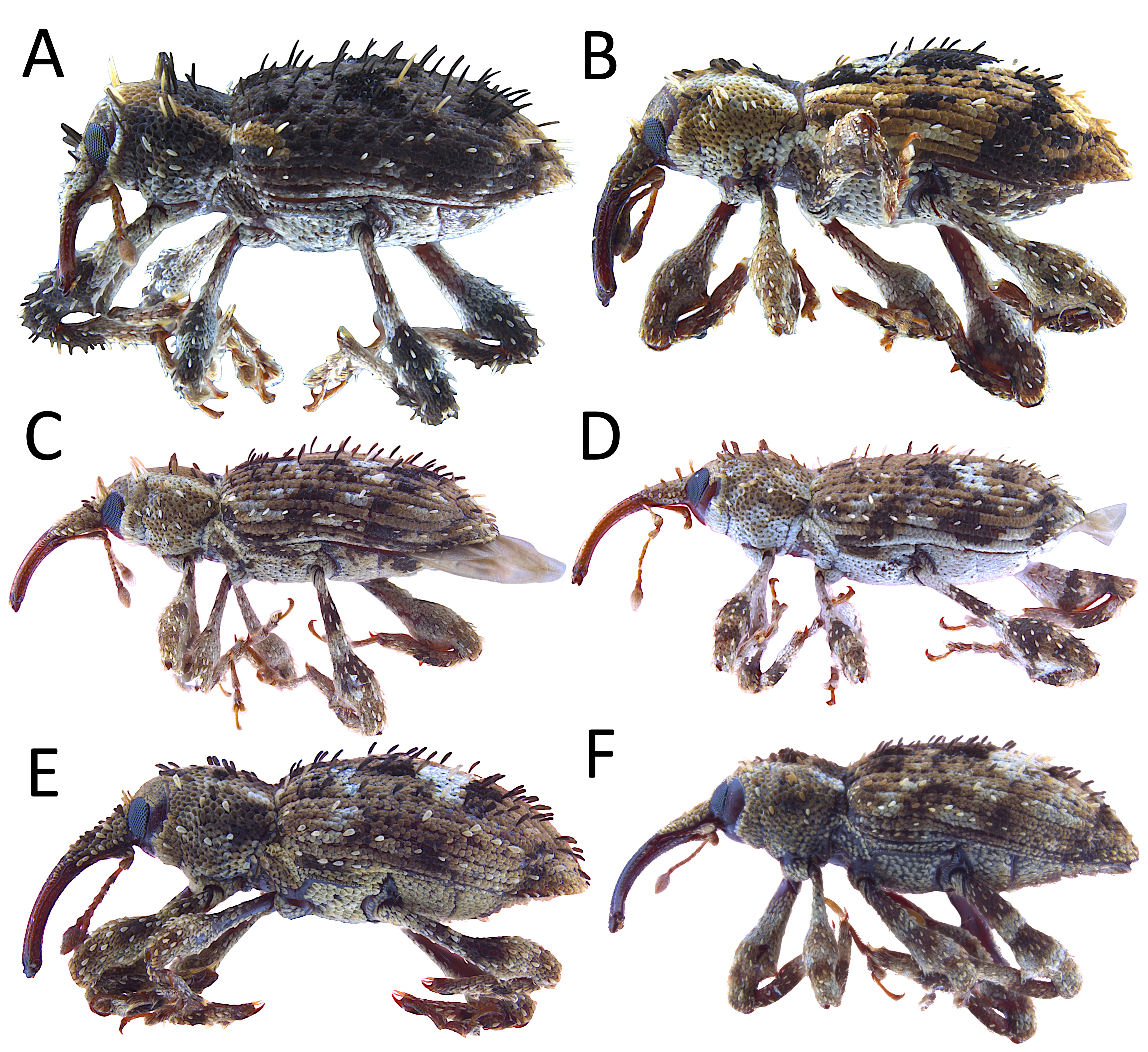 A) Acicnemis ryukyuana, B) Acicnemis postica, C) Acicnemis azumai, D) Acicnemis exilis, E) Acicnemis maculaalba, and F) Acicnemis kiotoensis.