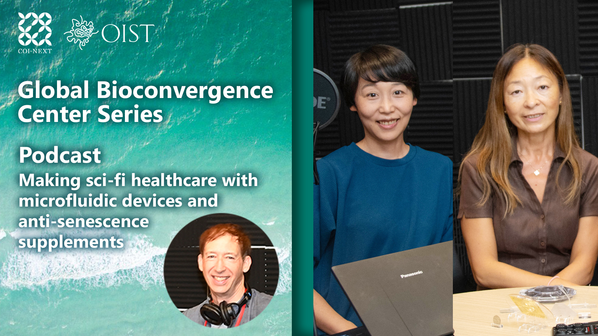 Header image for article regarding the fifth OIST podcast episode regarding microfluidic devices and anti-senesence supplements