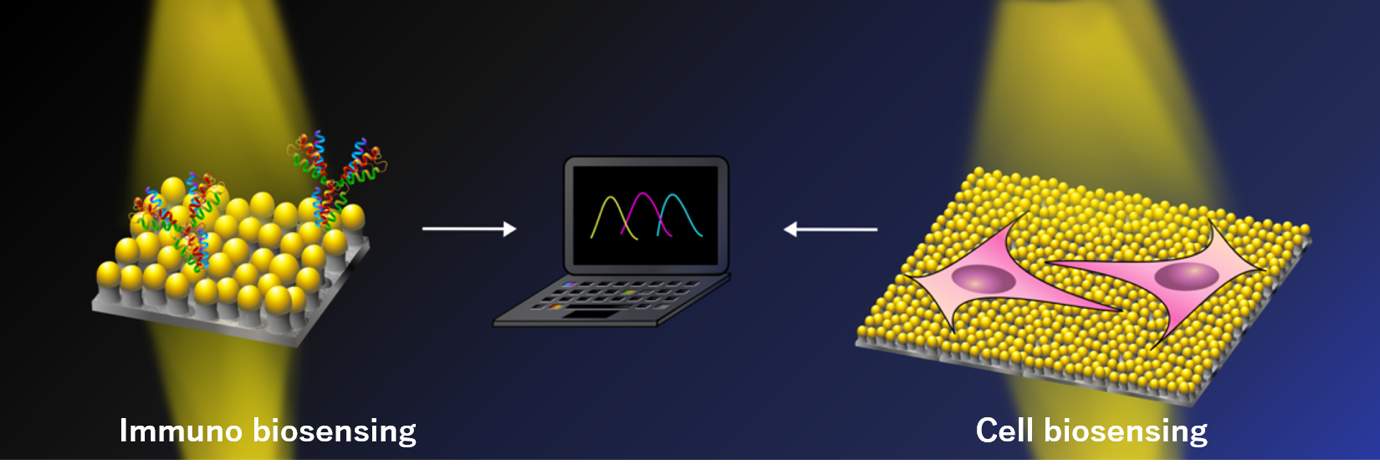 Figure 6: Plasmonic gold nanomushroom based LSPR sensing for immunosensing or cell assays.