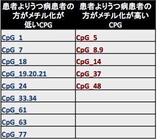 Table 2: CpGs, for which the methylation rate was distinctive for depression patients.