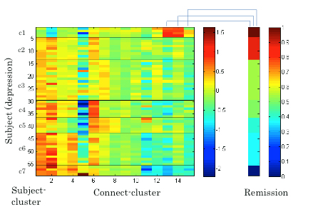Figure 3.1.5: Mean functional connectivity in connect-clusters and remission rate of depression for subject-clusters.