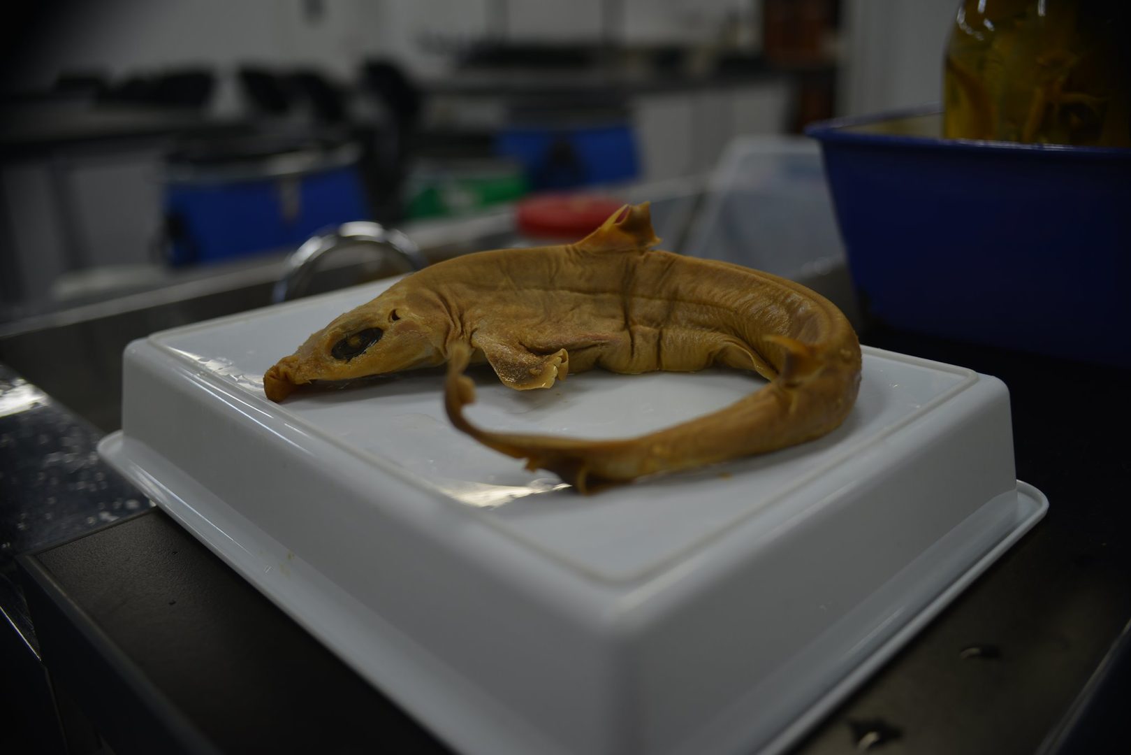 Figure 2: Recording morphological measurements from a dogfish specimen deposited in the fish collection of the National Museum of Nature and Science, Tokyo. This shark specimen was collected in 1890 from the fish market in Tokyo.