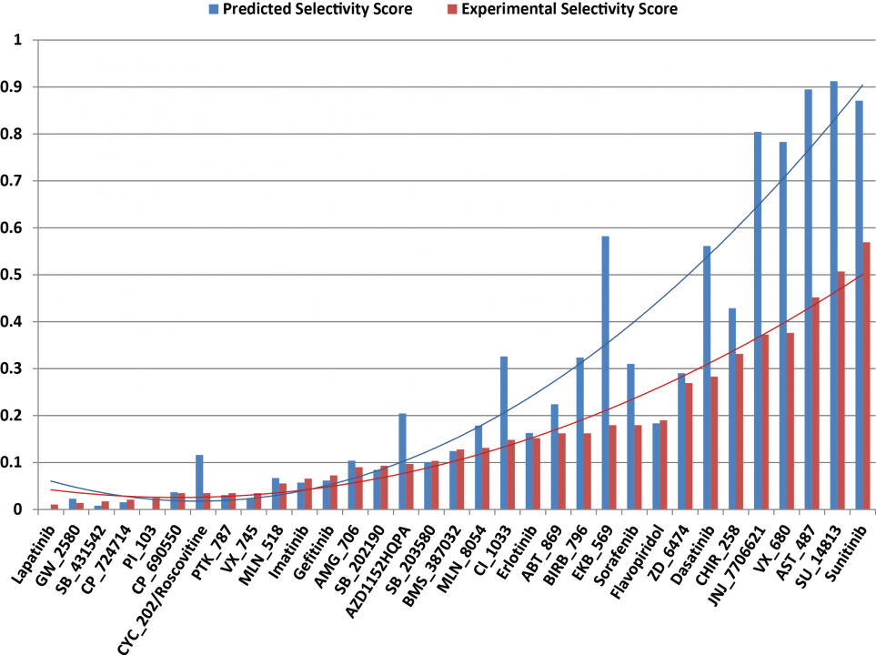 Fig. 11 Selectivity scores of the 33 kinase inhibitors against 139 different kinases.