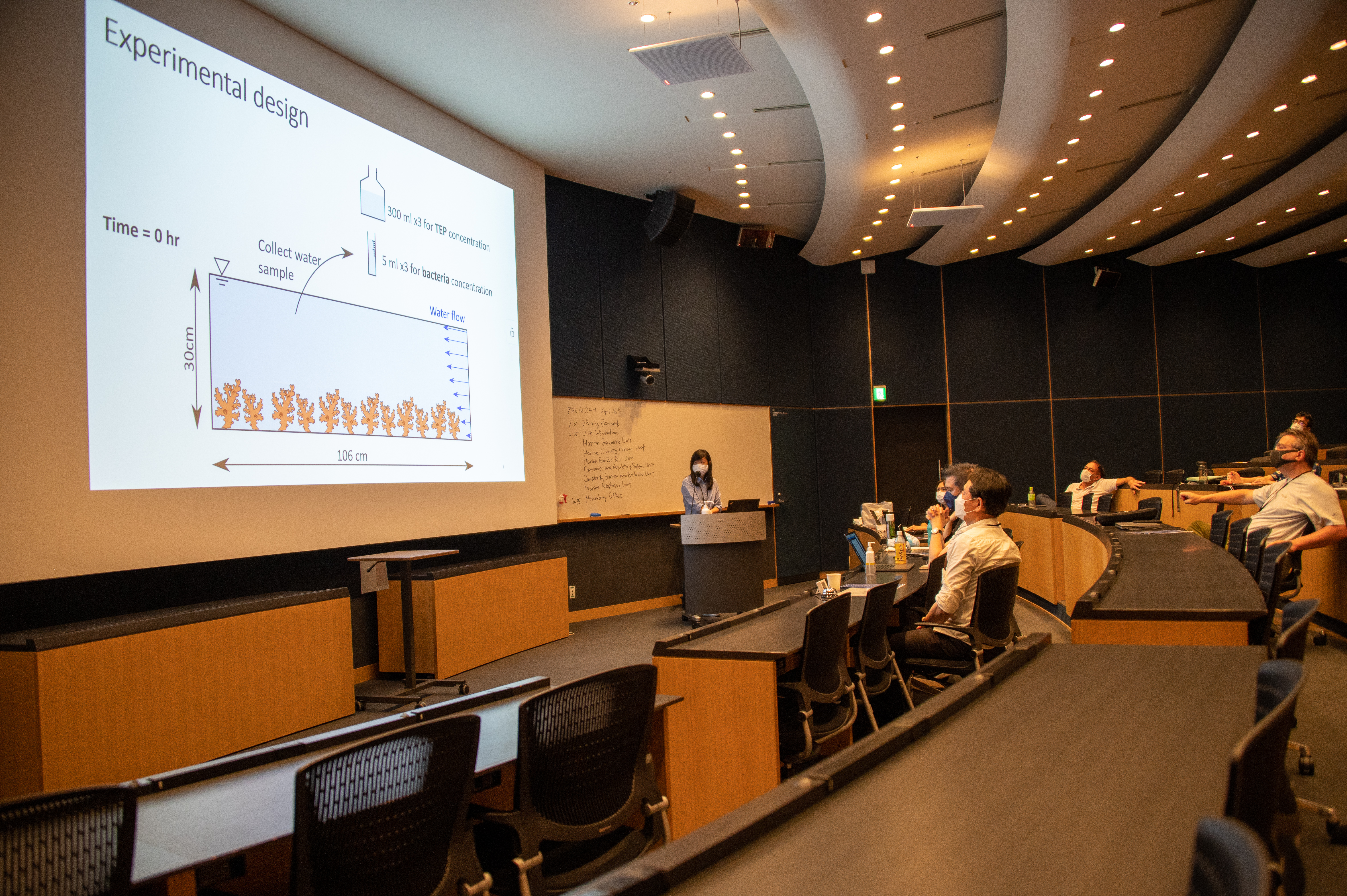 OIST Postdoctoral Scholar, Dr. Heng Wu, from the Marine Biophysics Unit, presents the Unit’s research at the OIST-Tohoku joint workshop for marine science.