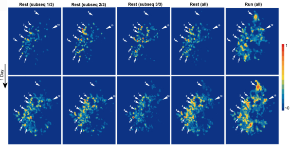 Astrocytes show hot-spot maps of activity. For each astrocyte the maps are specific for the specific behavior. The maps are stable over hours and even days.
