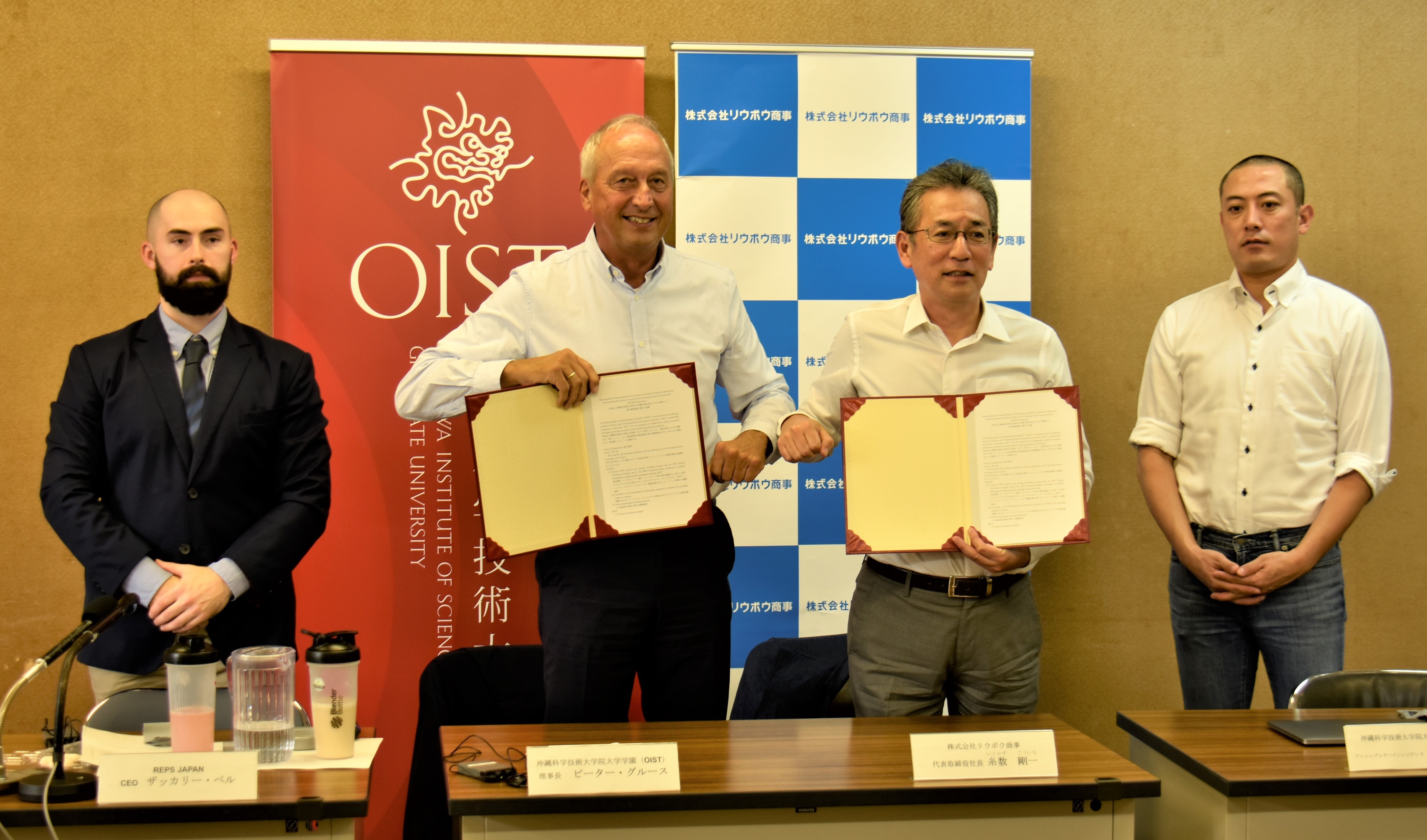 From left: CEO of REPS JAPAN Zachary Bell, President of OIST Peter Gruss, CEO of Ryubo Corporation Goichi Itokazu, Entrepreneur in Residence of OIST Masaaki Nakatsu