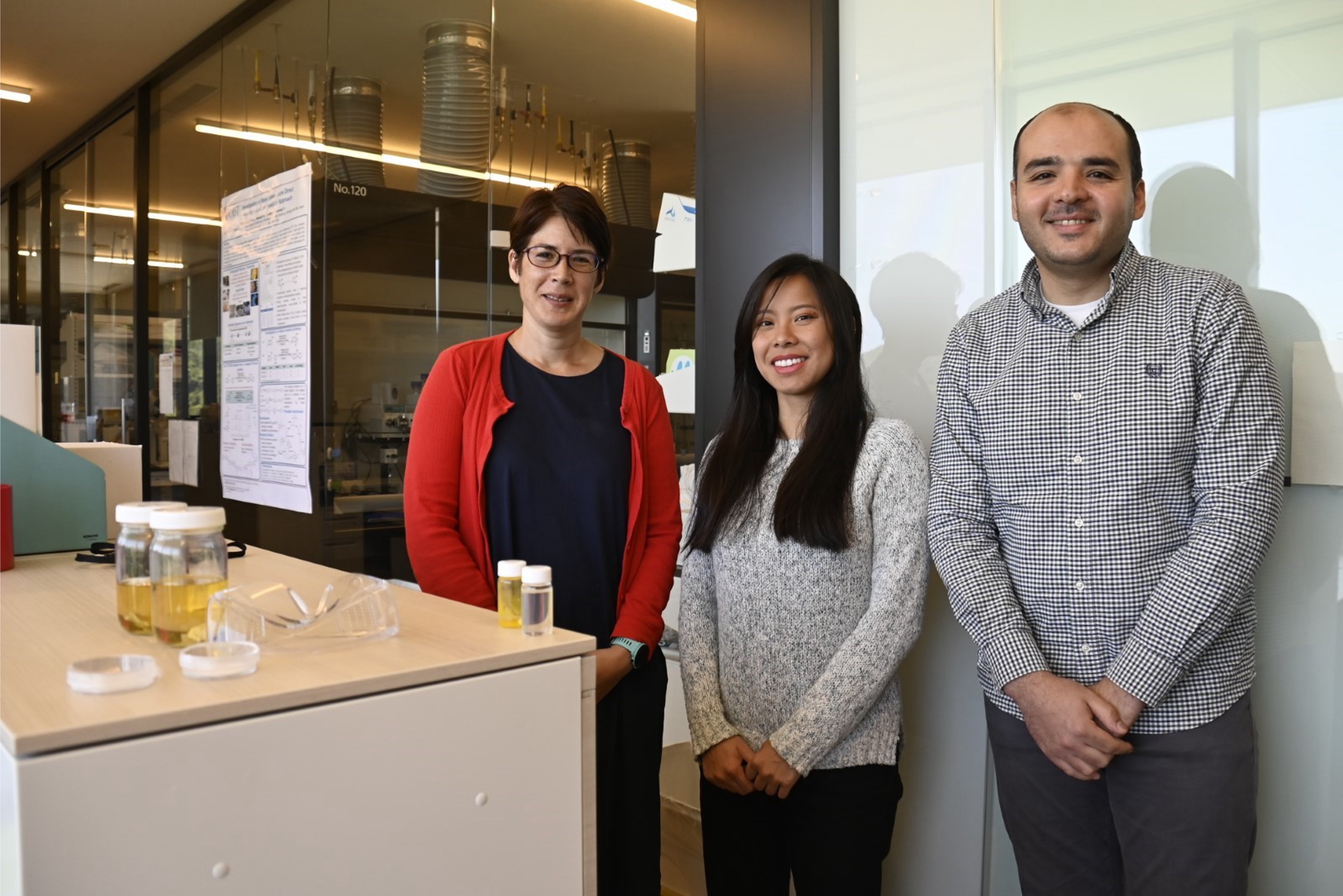 Prof. Christine Luscombe (left) and post-doctoral researchers Dr. Phan (middle) and Dr. Hassan (right) in the Lab’s office.