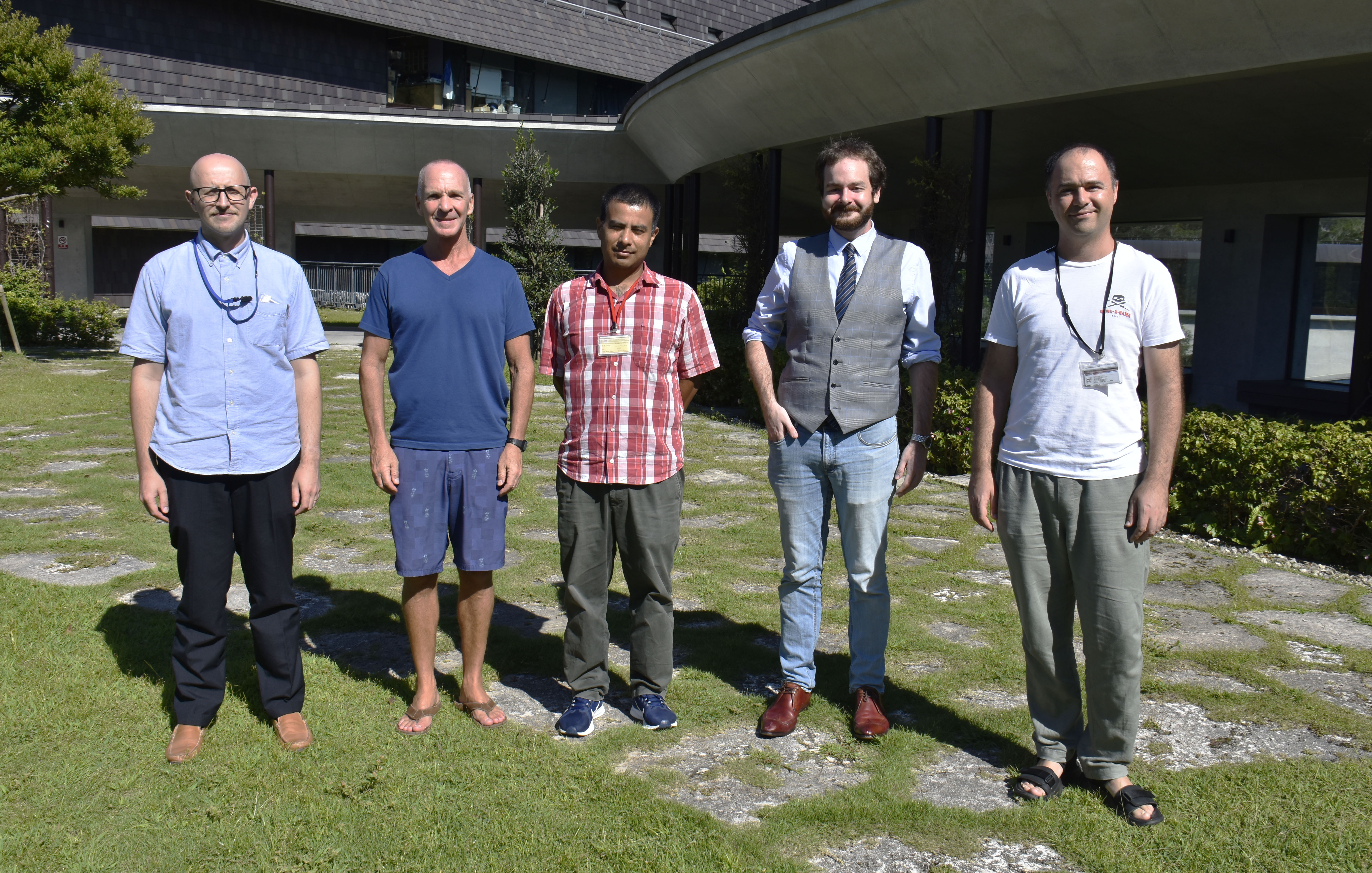 Researchers from OIST’s Mathematics, Mechanics and Materials Unit, pictured from left to right: Stoffel Janssens, Eliot Fried, David Vázquez-Cortés, James Kwiecinski, and Alessandro Giussani