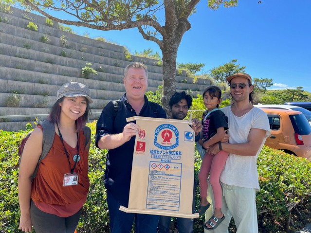 Ryukyu Cement Company supports OIST’s Coral Project by featuring the project logo on their cement bags and donating a part of their sales.