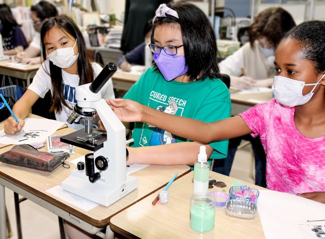 OIST Café participants engaged in writing tasks. OIST Café is intended for science majors interested in doing research in an international environment with communication in English. It allows participants to consider potential science careers and receive learning tips.