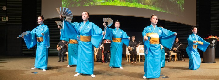 The ceremony began with a traditional Ryukyuan dance with sanshin accompaniments, performed by members of the OIST community.