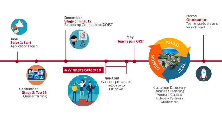 The 4 winning teams will relocate to Okinawa to build, test, and launch their startups with full backing from OIST.