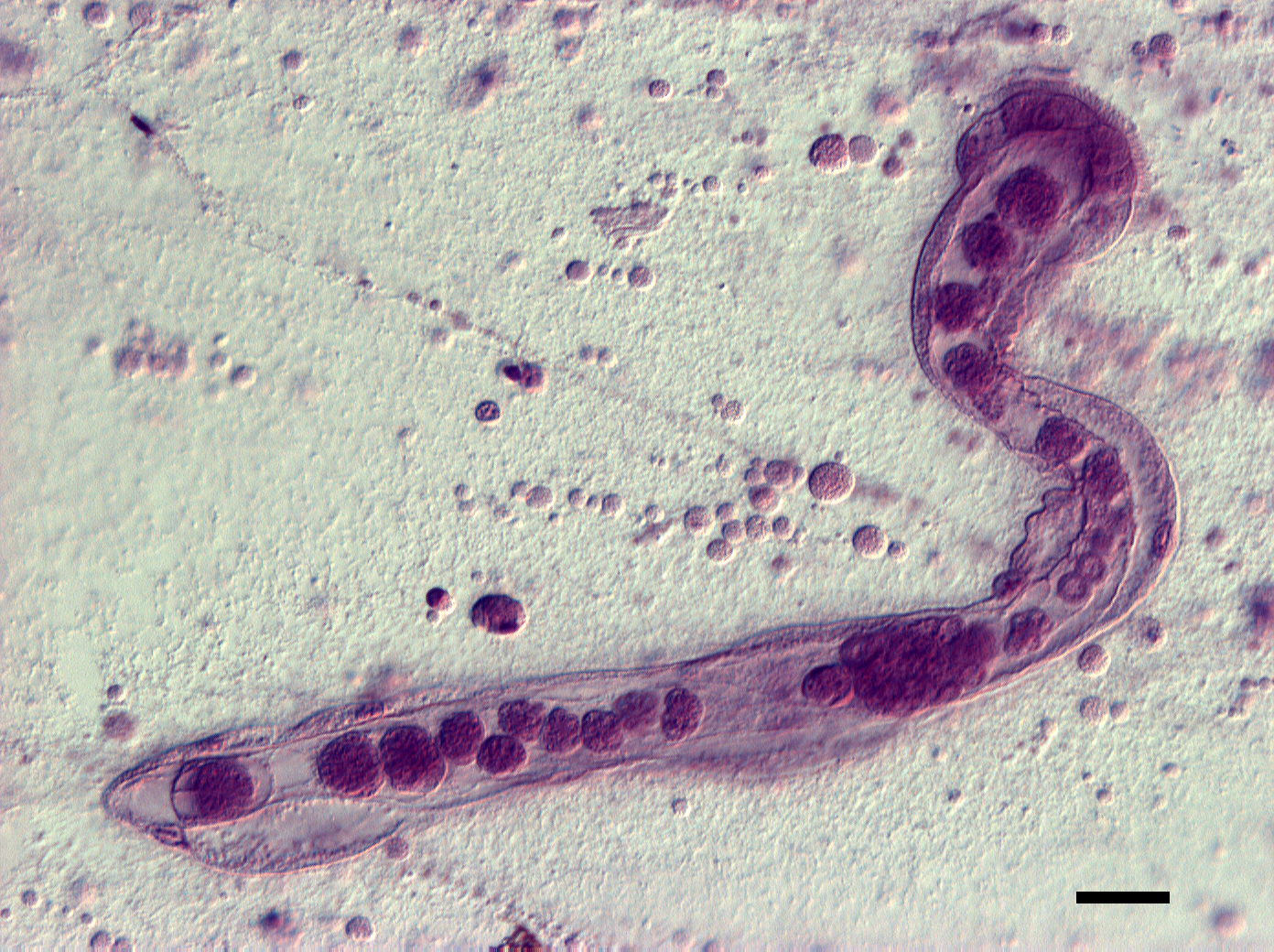 沖縄科学技術大学院大学(OIST)および大阪大学の研究者らは、 7月26日にGenome Biology and Evolution誌に発表された研究で、寄生動物であるニハイチュウのゲノム配列を発表した。ニハイチュウはたった30個の細胞で構成されており、タコその他の頭足類の腎嚢内に見られる。