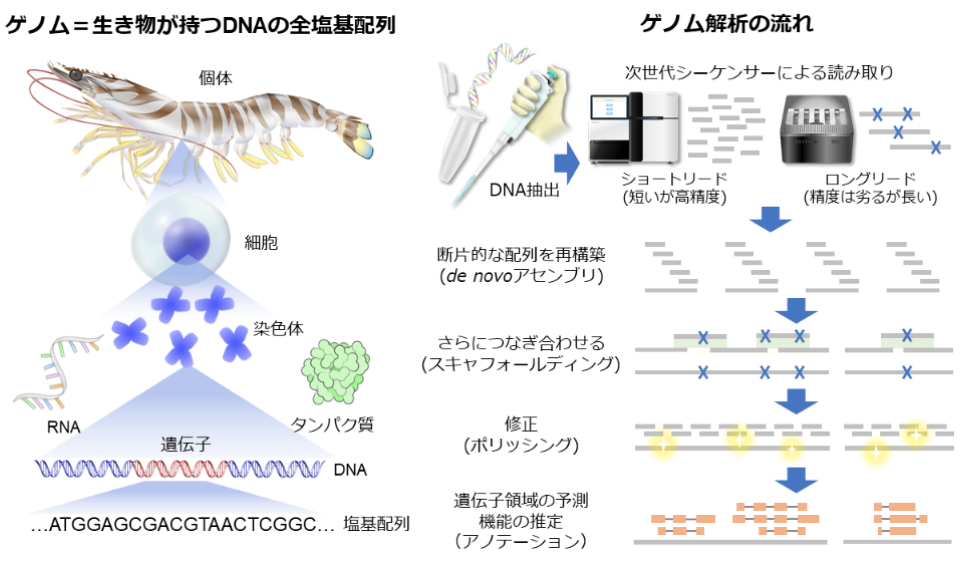 生物におけるゲノムと、クルマエビのゲノム解析の流れ