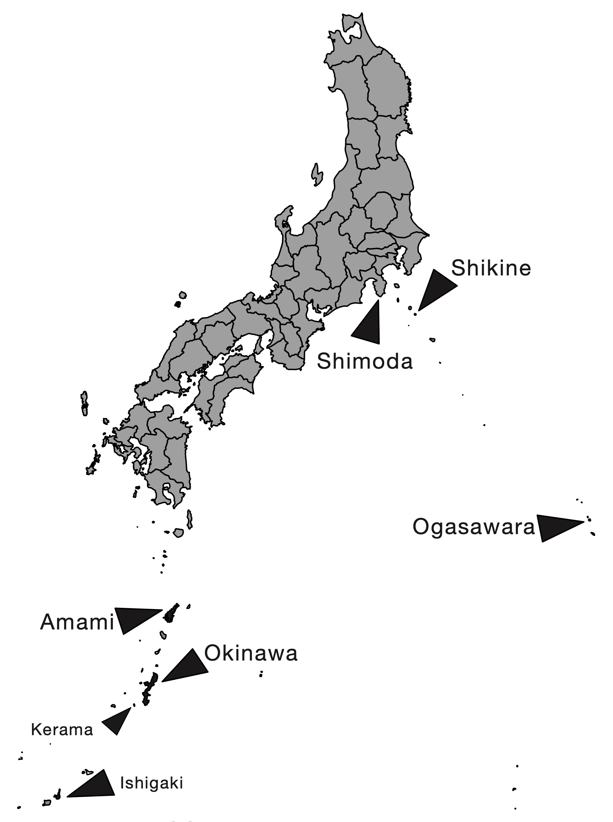 本研究において使用したイソギンチャクの採集海域を示した地図